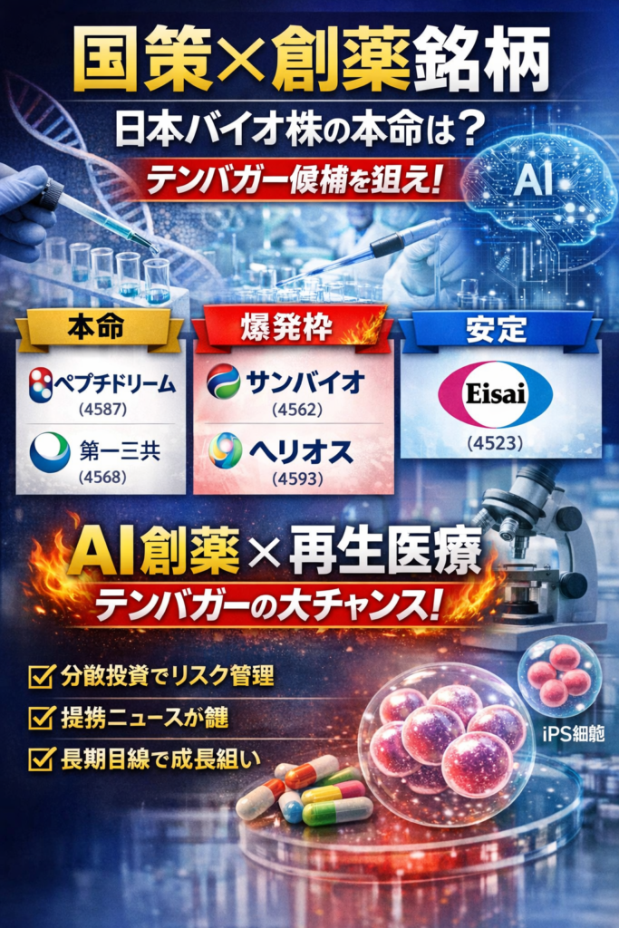 創薬銘柄は「国策×AI×医療」という最強テーマを持っています。